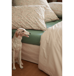 Entrez dans l'univers poétique de la gamme Cottage, une parure pleine de secrets. Au premier coup d'œil, elle offre un jardin plein de sérénité, composé de fleurs délicatement dessinées à la main dans des coloris pastels. Observez plus attentivement... De malicieux compagnons à longues oreilles se cachent parmi les pétales. A la nuit tombée, ils s'éclipsent doucement, laissant place à un cocon de douceur pour vos rêves les plus poétiques.