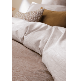 Un design minéral, une inspiration brute. Géo Minéral déploie un motif géométrique audacieux, où les teintes chocolat et blanc mat se rencontrent, évoquant les strates de la roche. Le coordonné, recouvert de motifs géométriques, prolonge cette histoire minérale, transformant votre lit en havre de paix naturel et sophistiqué.