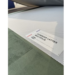 🔹 Lattes : 13 lattes fixes en bois multiplis recouvertes + 1 traverse longitudinale
